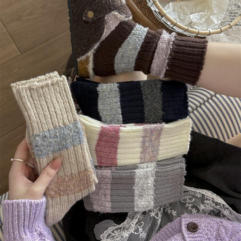Women's Autumn and Winter Thickened Warm Contrast Color Striped Wool Long Stack Socks