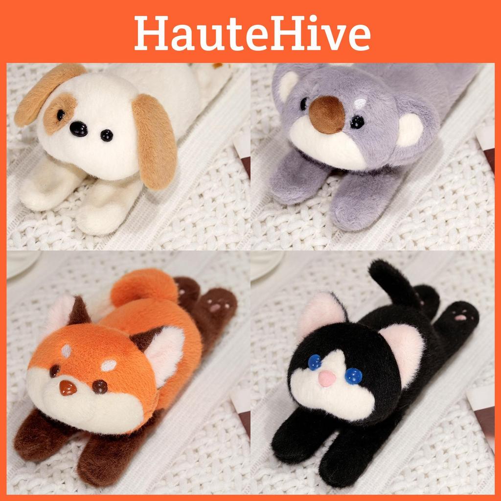 Made from high-quality short plush material and filled with soft PP cotton, this circular wrist toy is as cozy as it is charming. Standing at 26 cm, it's lightweight and easy for little hands to carry around.Each plush toy features a unique animal design, including an irresistibly cute dog with big floppy ears, a lovable koala, a playful orange-brown fox, and a striking black cat with blue eyes.