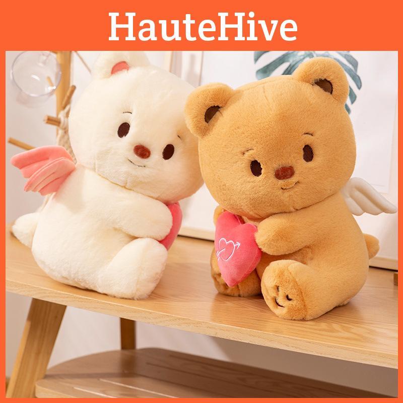 Available in two enchanting colorsbrown and whitethis angelic bear stands at 23cm and 33cm tall, making it an ideal size for little arms to embrace.Made from high-quality short plush fabric and filled with soft PP cotton, our Angel Bear offers an irresistibly huggable experience. The premium materials ensure that it is not only incredibly soft to the touch but also durable enough to withstand countless adventures and cuddle sessions.