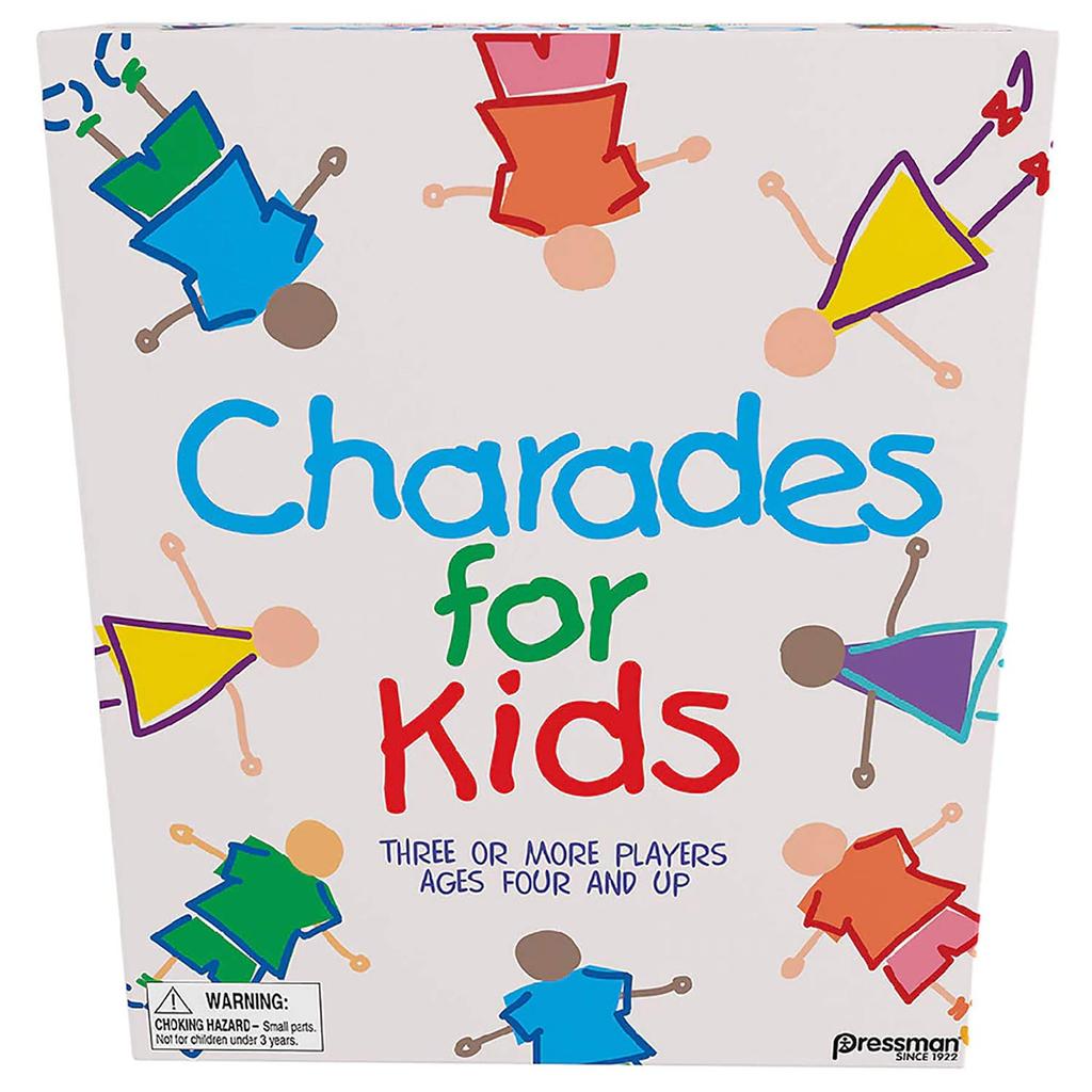 Recommended for ages 4 and up. Includes: 150 Charades cards, 450 Charades, a sand timer, a game die, and rules. For 3 or more players. Suitable for ages 4 and up. Since 1922, Pressman has been playing the classic Charades game—designed specifically for children to play and enjoy. Younger players can use colorful picture cards—no reading required—to act out the toothbrush, jump, and cat. Older children can read simple words and phrases and do fun things like eating spaghetti, playing guitar, and blowing bubbles. It's great fun as the whole family tries to guess the charades before time runs out. www.pressmantoy.com www.crownandandrews.com Register to win www.pressmantoy.com Made in Dongdong, Guangdong Province, China.