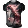 Men's Stylish T-Shirt with Polar Bear Print, New Summer Casual Outdoor Short Sleeve, Lightning Pattern, Comfortable Streetwear Top