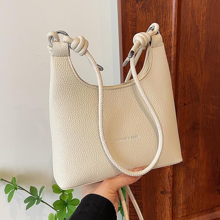 - **Structured Multi-Way Bag Details**: Features a stylish crescent bag silhouette with PU material, a textured finish, knotted strap detail, and versatile carrying options (shoulder, crossbody). It exudes chic and minimalist charm. Four versatile color options cater to diverse style preferences.