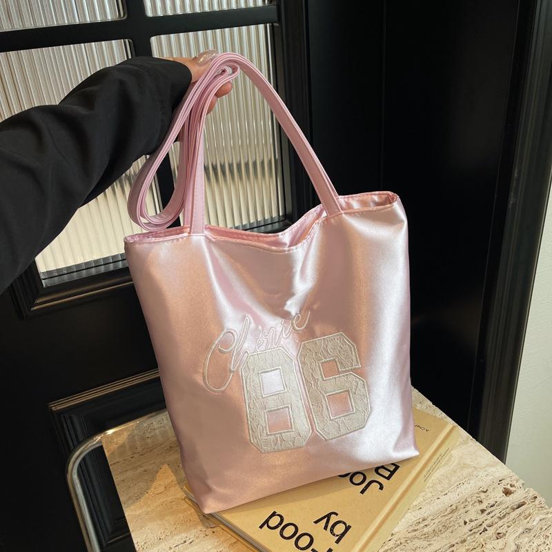- **Structured Design Details**: Features a stylish tote bag silhouette with fabric material, shiny "86" graphic print, and a minimalist design. It supports versatile carrying options (handheld, shoulder) with a 34cm handheld strap. It exudes casual and trendy charm, perfect for adding a playful touch to any outfit.