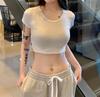 Trendy Sexy U-Neck Crop Top: Slimming and Flattering Solid Color T-Shirt for Women
