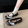 Fashion Single Shoes 2025 New Spring and Autumn Mary Flat Vintage One Bow Lace French Shoes