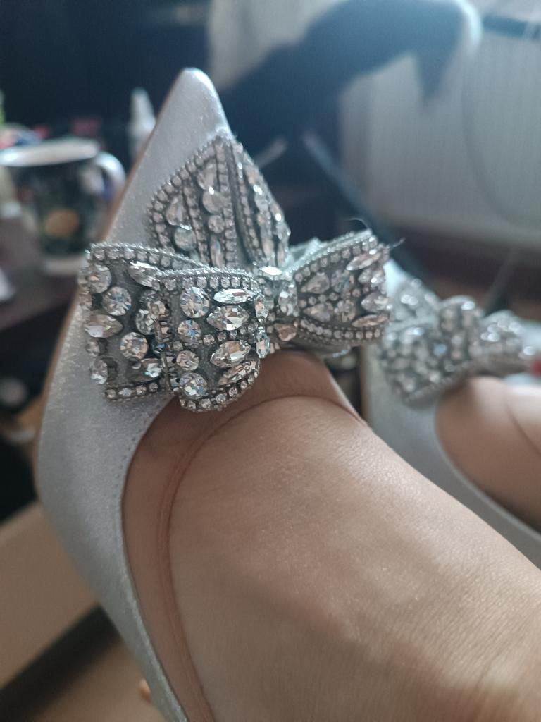 The shoes are like in the photo, they shine a lot in person, but the heel was a mistake, I ordered 9 cm, I need to wear lower ones now.