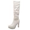 Fashion Women Winter High Boots Sexy High Heels Platform Knee High Boots Ladies Fashion Beaded Zipper White Black High Boots Shoes