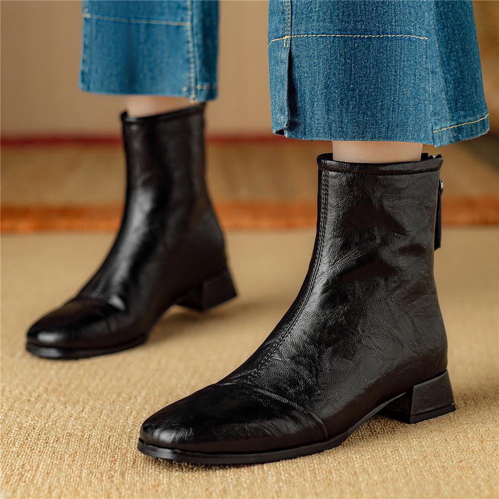 Fashion 2025 Autumn Luxury Leather Women Ankle Boots Back Zipper Close Modern Boots High Heels Shoes Woman Boats Botines Para Mujer