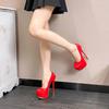 Fashion Thick-soled High-heeled Shoes Large Size 45 Sexy Slip-on High-heeled Shoes Wedding Shoes Banquet Shallow-mouth Heel Height 16cm