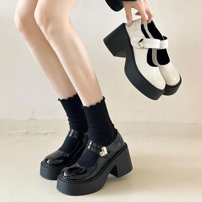 Fashion Chunky Platform High Heels Pumps Women 2025 Spring Autumn Belt Buckle Mary Jane Lolita Shoes Woman Black Beige Cute Party Shoes