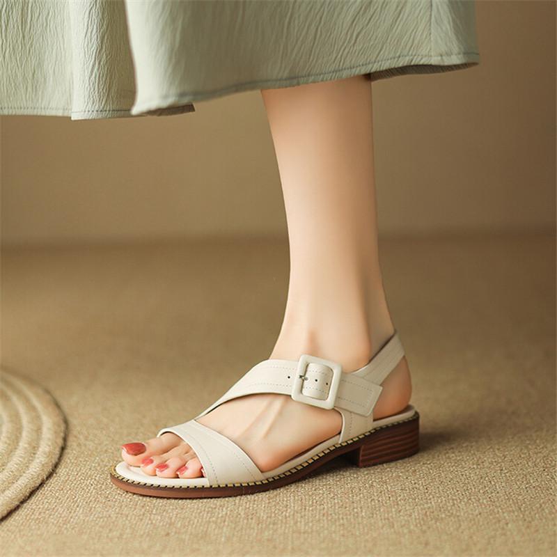 Fashion New Genuine Leather Summer Sandals Women Round Toe Shoes Chunky Heel Open Toe Back Strap Sandals for Women Cow Leather Sandals