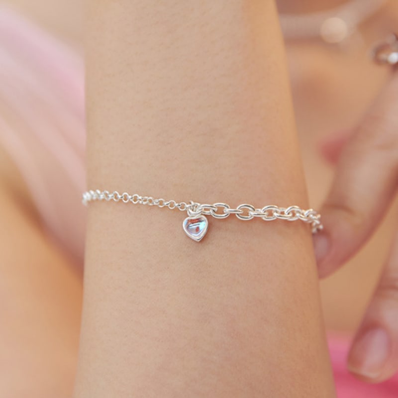 Dmoment (925 Silver) Glass Bloom Heart Silver Bracelet