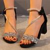 High Heels Women Sandals Crystal Elegant Chunky Woman Shoes 2025 Trend Open Toe Sandals New Summer Sandalias De Mujer