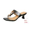 2025 Summer Women's Slippers Crystal Metal Decoration Open Toe Med Heel Thong Sandals Plus Size Versatile Dress Slippers