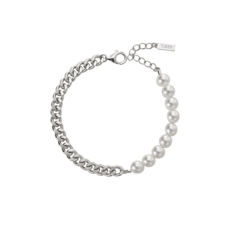 Tirr Lirr Tizen Maximize Shell Pearl 6mm Chain Silver White Bracelet TBSSVW14027M