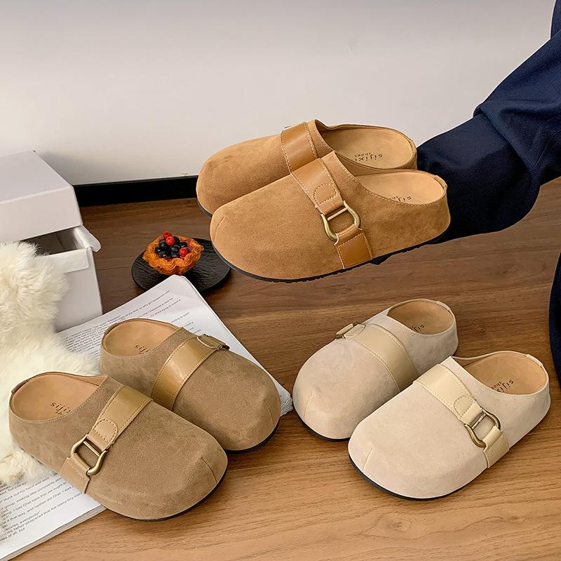 Thick-bottomed Retro Boken Slippers for Women's Outerwear 2025 New Autumn Non-slip Heightening with Skirt Bag Head and Half Slippers Tide
