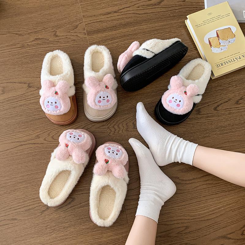 Cute Sweet Cartoon Home Warm Thick-soled Cotton Slippers Winter Ladies Girl Heart Casual Plush Confinement Shoes