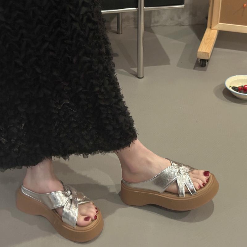 Platform Slippers Women's Summer Wear 2025 New Fashion Fairy Wind Cross Beach Shoes Small People Go Out Sandals