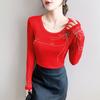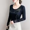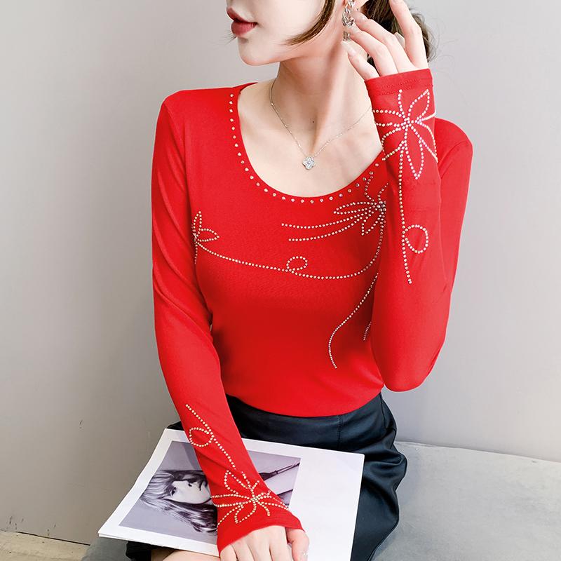 Spring Autumn Women's Hotfix Rhinestone T-Shirt Elegant O-neck Full Sleeve Tees Slim Ladies Tops