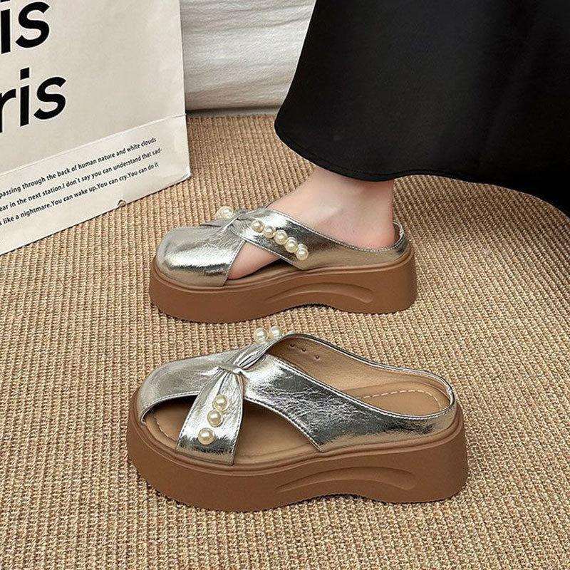 Fashion Temperament Versatile Pearl Hollow Girls Bag Head Slippers Summer 2025 New Wear Sandals Breathable Slippers