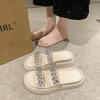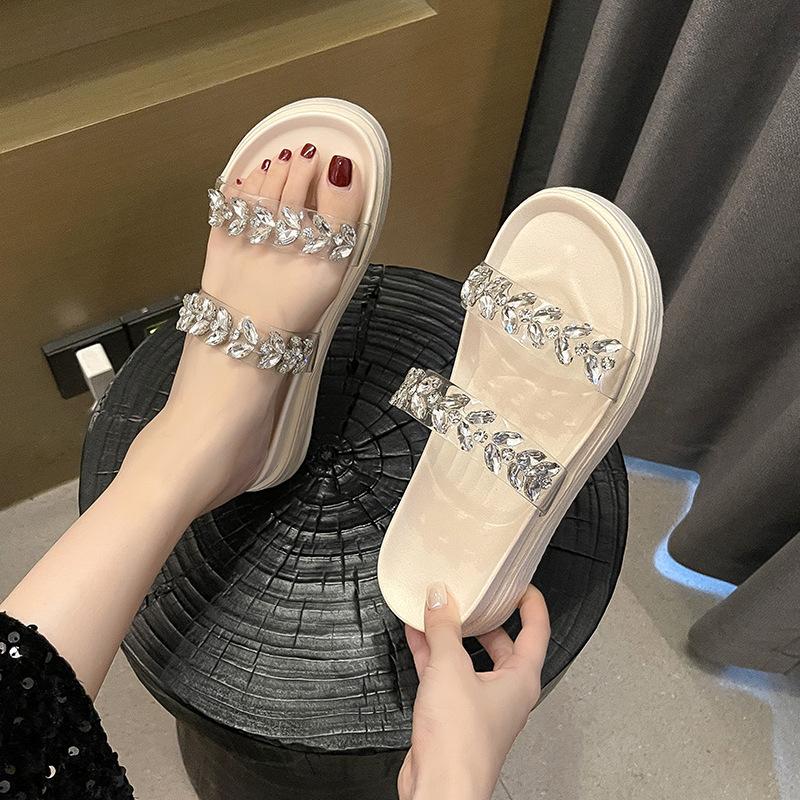 Rhinestone Transparent Belt One-word Cool Slippers Fairy Shoes Wear 2025 Summer Thick-soled Height-increasing Small Slippers