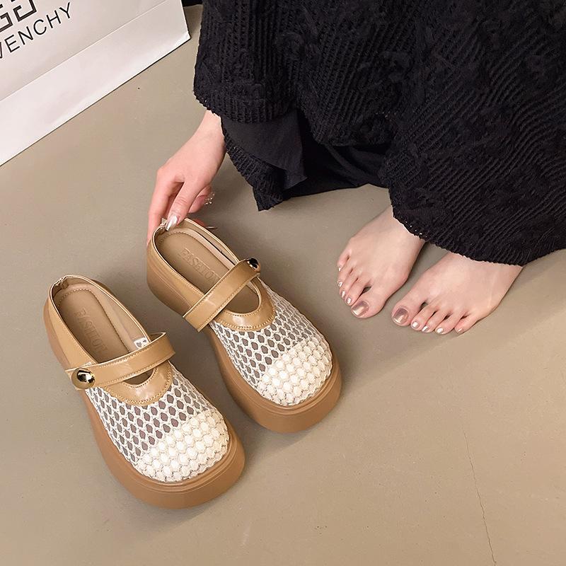 Thick-soled Bag Head Half Slippers Women's 2025 Summer New Woven Hollow Hole Mesh Shoes One Pedal Lazy Cool Slippers