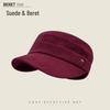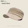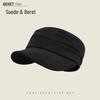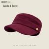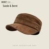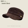 Women's Ruched Suede Flat Top Equestrian Hat - Warm Autumn/Winter Newsboy Cap with Face-Slimming Duckbill Design