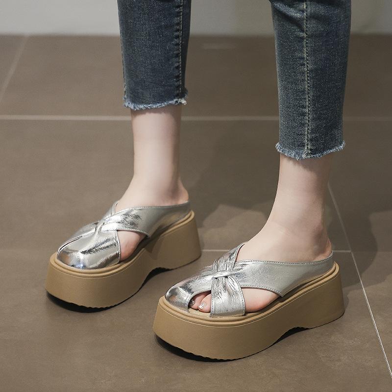 Baotou Slippers Women's Summer Wear 2025 New Thick-soled Retro Woven Casual Lazy Pedal Beach Sandals