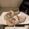 New Spring and Summer Cloth Shoes Bag Head Home Mesh Indoor and Outdoor Ethnic Style Flat Bottom Embroidered Flower Women's Cool Slippers
