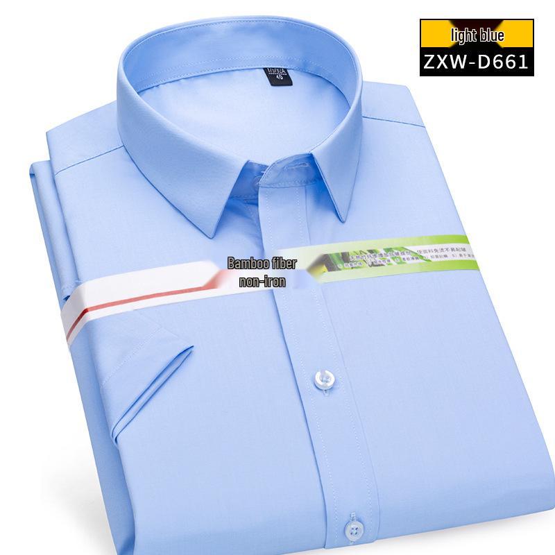 This formal workwear shirt is crafted from premium bamboo fiber, offering a comfortable and breathable experience. Its solid blue design is perfect for a polished and professional look. Featuring a unique square neckline and short sleeves, this shirt blends style and practicality, making it an ideal choice for business settings.