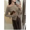 Design Sense Slanted Off-Shoulder Knit Top: Women's Slimming Long Sleeve, Autumn/Winter Collection, Small Size, Elegant and Versatile Fashion