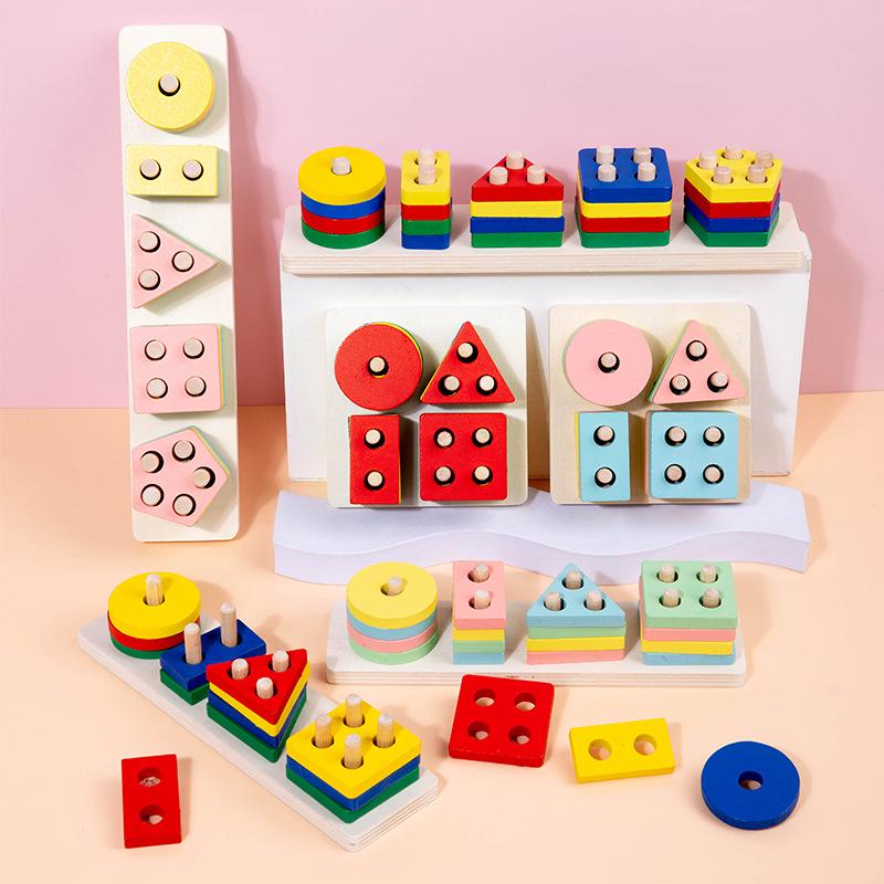 Montessori Stacking Geometric Shapes Puzzle for Kids Ages 2-3: Educational Column Matching Blocks