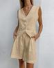 Elevate your spring and summer wardrobe with this chic sleeveless vest and shorts set, designed with a blend of cotton and linen for ultimate comfort and breathability. Featuring a solid pattern with subtle printed decorations, this ensemble perfectly captures a casual yet sophisticated style. Tailored for European and American tastes, this set is ideal for everyday wear, offering a versatile and effortlessly stylish look for warmer months.