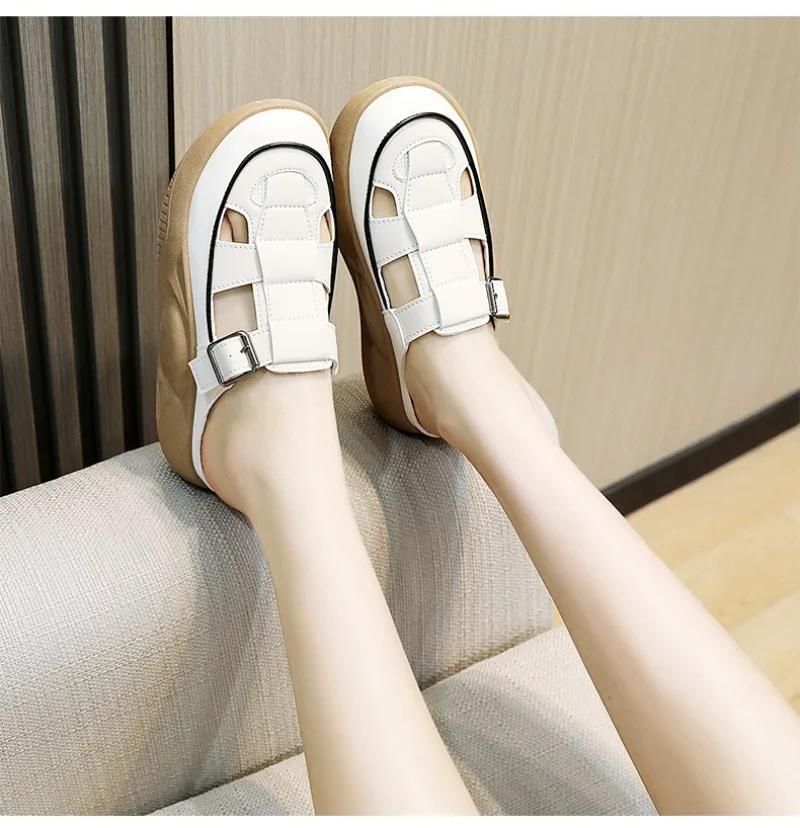 Fashion 2024 Summer Thick Sole Increased Buckle Design Women's Slippers Fashionable Casual Hollow Breathable Baotou Slippers for Women