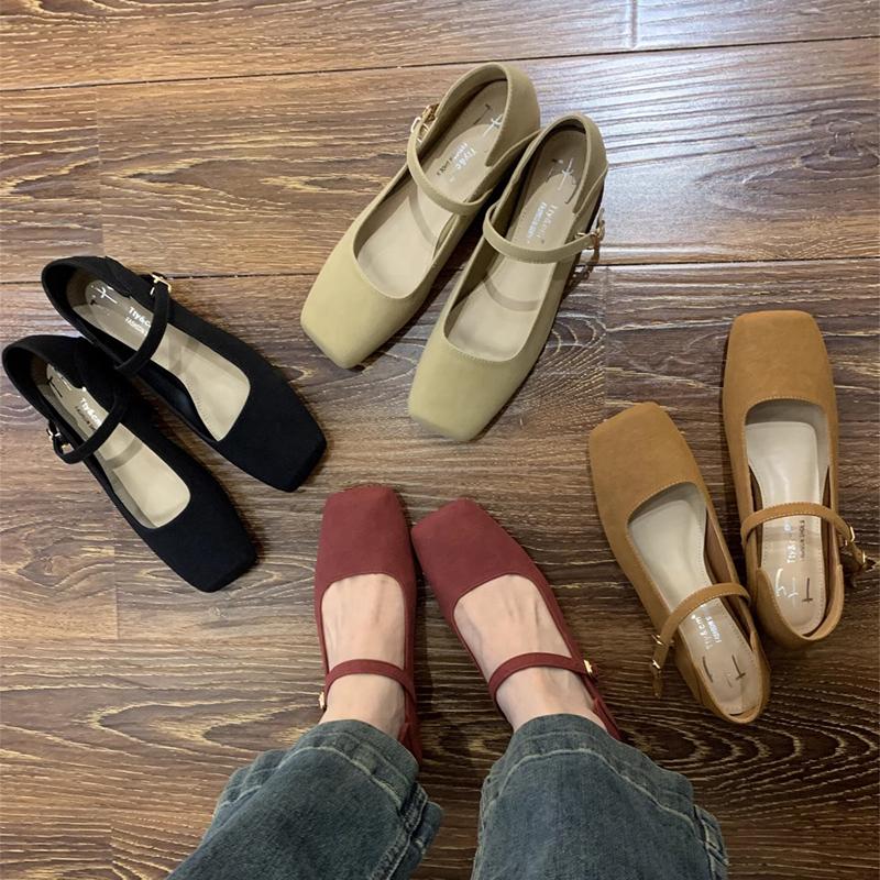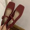 Fashion SUOJIALUN 2024 Autumn Women Flat Shoes Fashion Square Toe Ladies Elegant Mary Jane Shoes Low Wedge Heel Dress Ballerinas Shoes