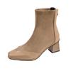 Fashion Winter New Thick Heel Cotton Boots Women's Square Head Splicing Suede Back Zipper Anti-slip Wear-resistant Short Boots