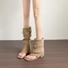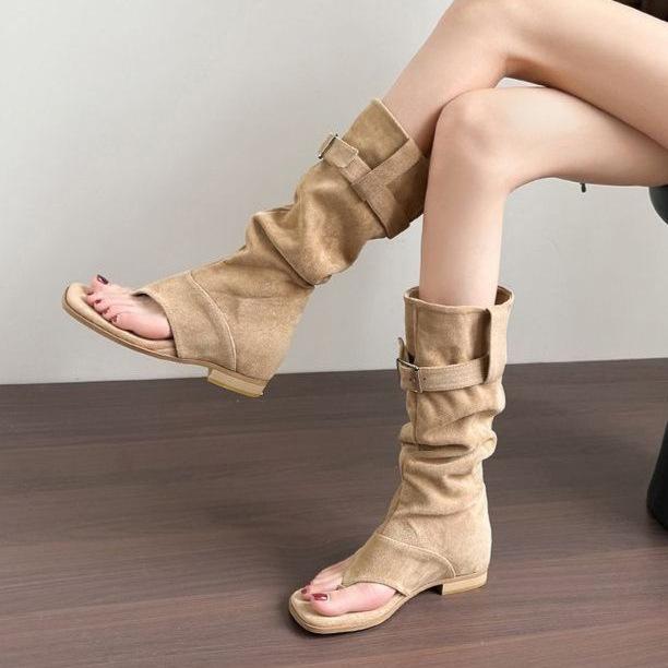 Two Wear Height-increasing Cool Boots, Women's Wasteland Wind Belt Buckle Pleated Pile Boots 2025 Summer New Absolute Long Boots
