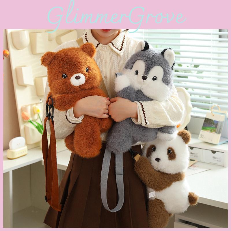 Plush Panda Backpack Child Animal Doll Crossbody Bag Cute Fox Doll Bag Plushie