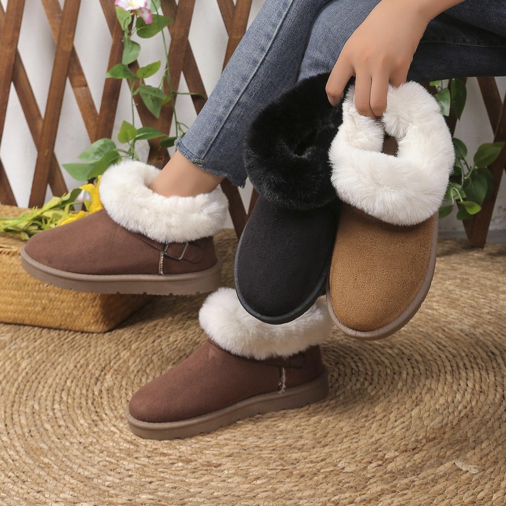 Winter Large Size Metal Buckle Fleece Cotton Shoes European and American Thick-soled Snow Boots Women