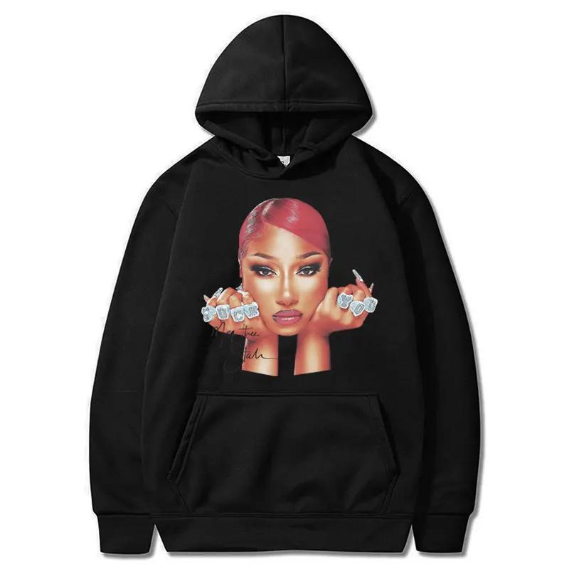 Rapper Megan Thee Stallion Face Print Fashion Hoodie 90s Vintage Hip Hop Men Women Sweatshirt Fleece Oversized Casual Streetwear