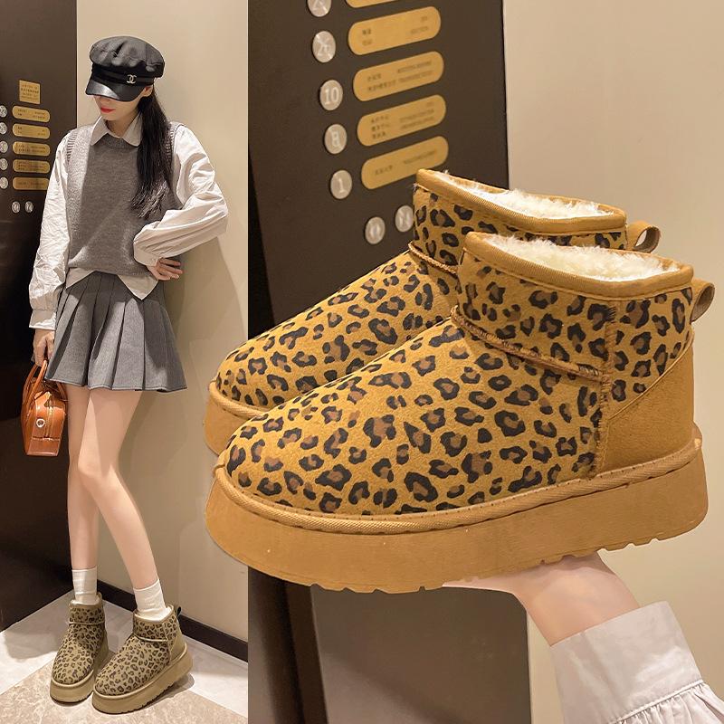 Snow Boots Women's Winter New Fashion Leopard Print Thick-soled Warm Bread Shoes Velvet Short Cotton Boots Women