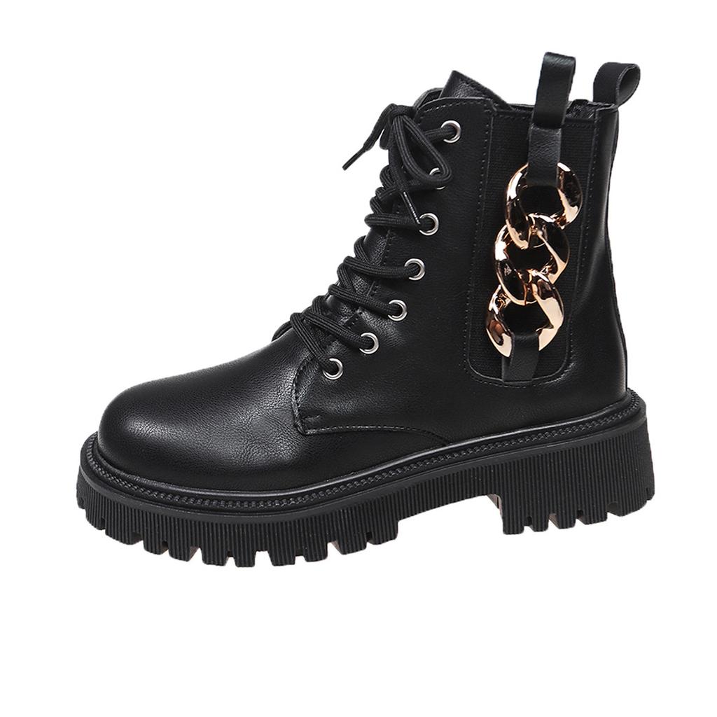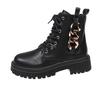 Martin Boots Short Leather Boots Women's Autumn and Winter New Large Size Metal Chain Decorative Chelsea Short Boots Women's Boots