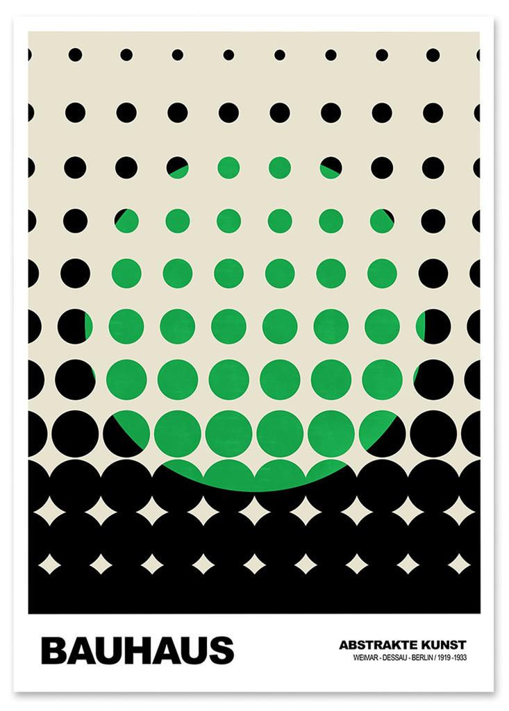 Poster Green Black Bauhaus Dots