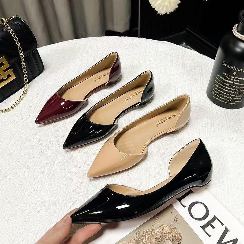 French Side Empty Nude Flat Shoes Women's Summer New Temperament Casual Versatile Professional Commuter Pointed Single Shoes