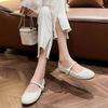 Fashion Imported Smallcow Leatherargyll Pearl Buckle Strap Shallow Sole Flat Women's Shoes Elegant Stylish Trendy Flat Heels Mary Janes
