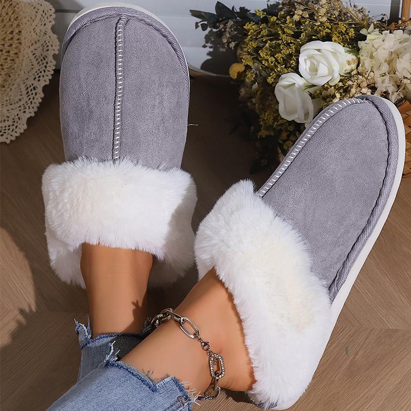 Fashion Winter Slip On Non Slip Fur Slippers Women Faux Fur Warm Plush Slippers Woman Indoor Mix Color Round Toe Cotton Slides Female