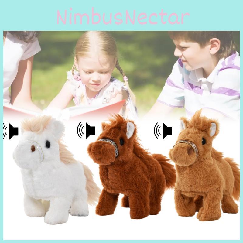 The Realistic Robot Pony is a plush toy that features walking functionality, bringing a lifelike experience. Made of soft fiber cotton with a long plush exterior, it measures 20*17*10cm. Powered by two AA batteries not included, it is ideal for childrens play and collection. Wipe clean with a damp cloth to maintain its appearance.