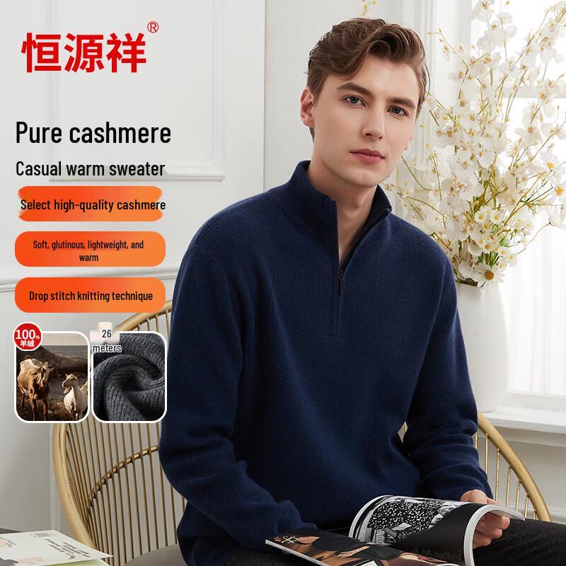 Hengyuanxiang Men's Pure Cashmere Stand-Collar Pullover Sweater