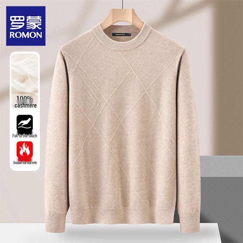 Luomeng Men's Round Neck Pullover Cashmere Sweater