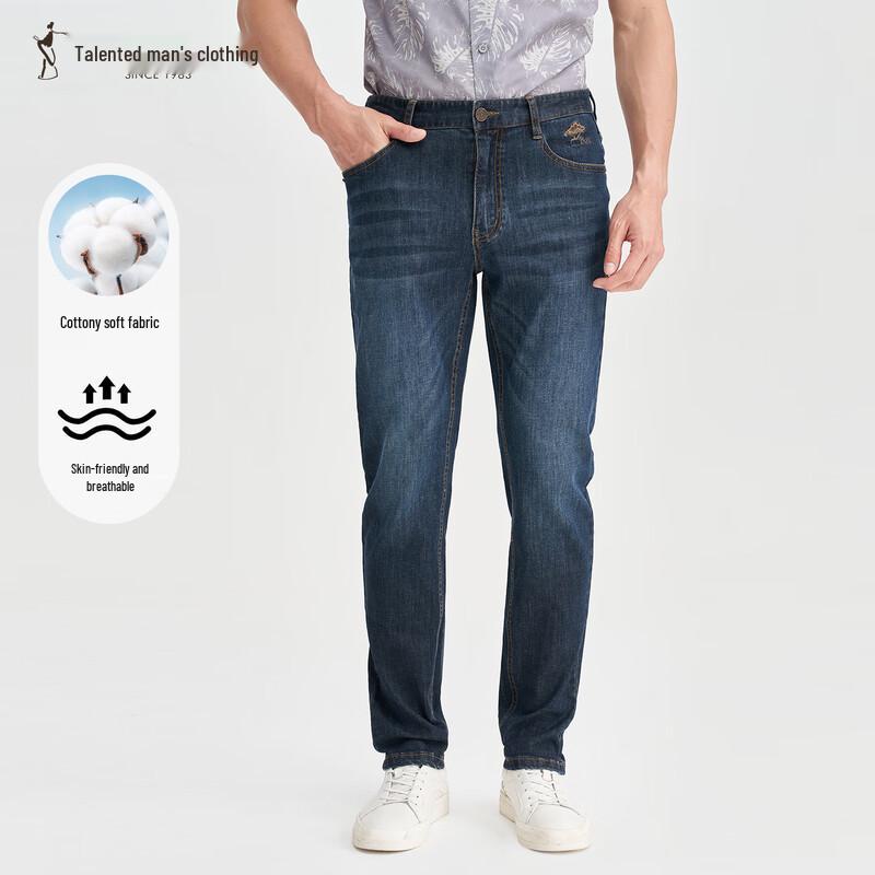 Cai Zi Men's Straight-Leg Jeans with Pine Embroidery